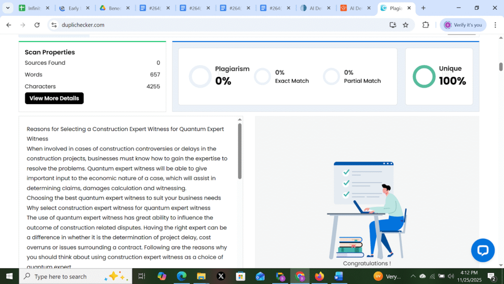 Selecting the appropriate quantum witness is a critical move to the companies dealing with construction disputes. Experience, credentials, and impartiality of the expert is important in making sure that your case is successful. With the guidance presented in this guide, companies will have all the information to make a wise choice in contracting a quantum expert witness to serve their construction matters.